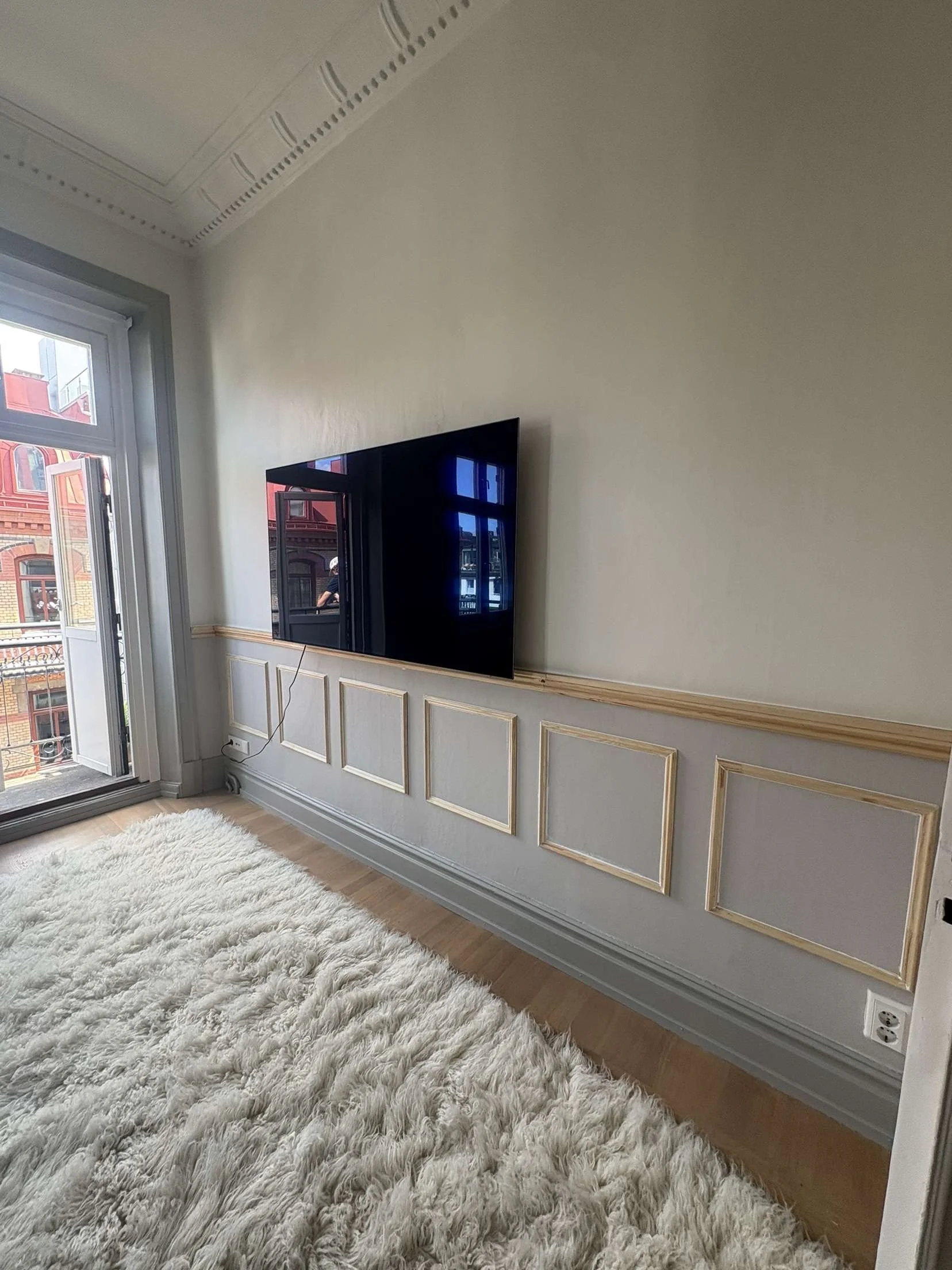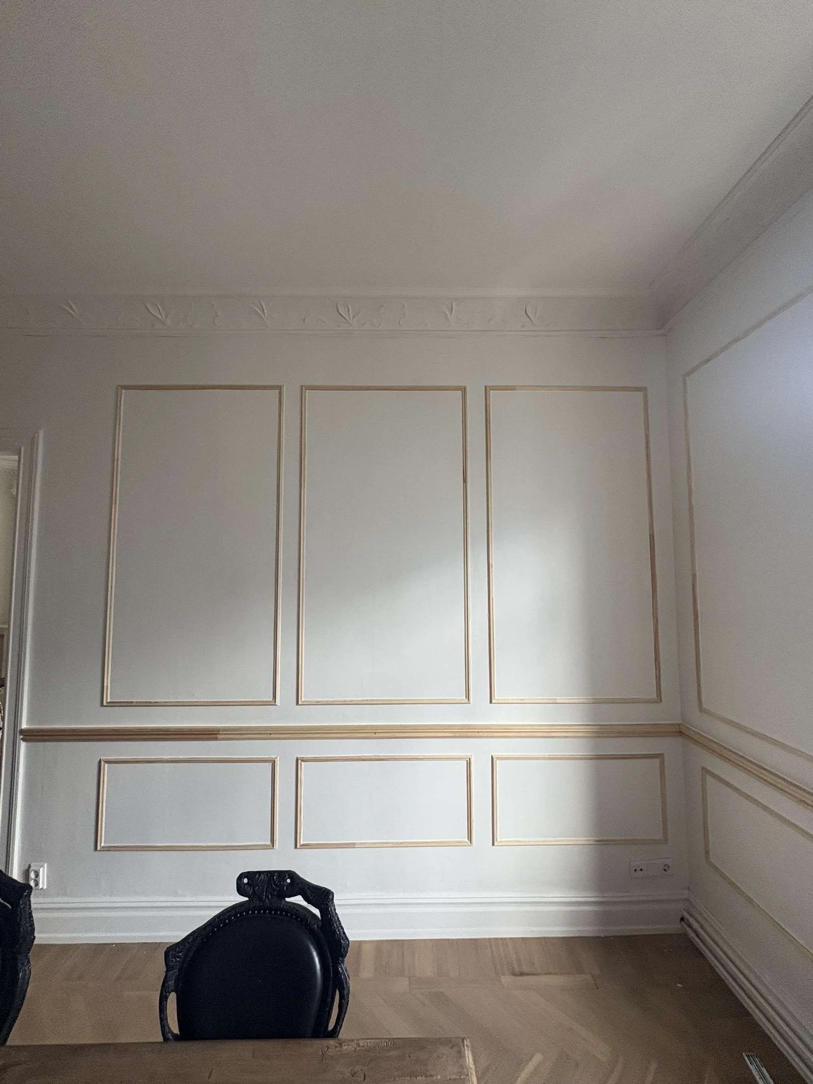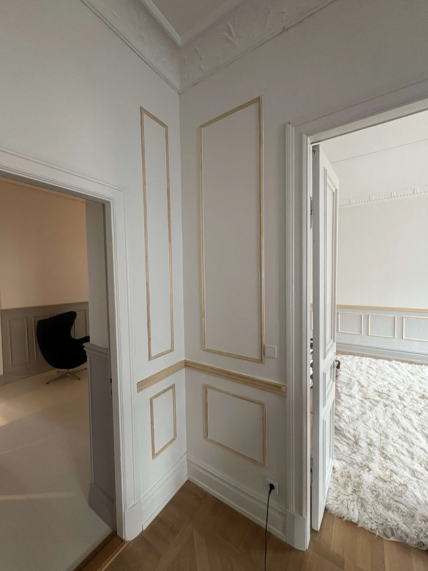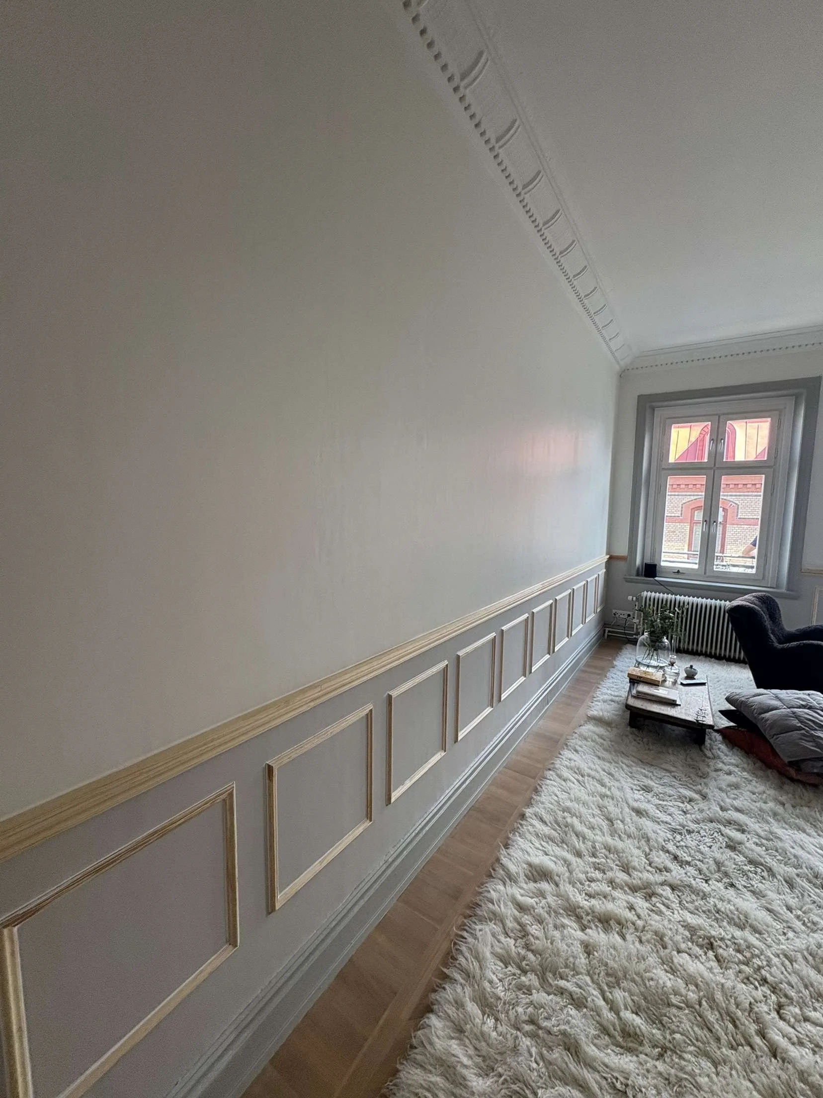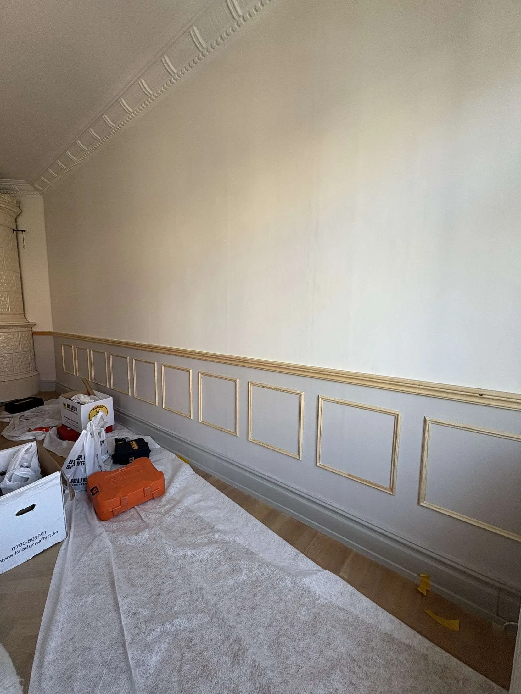 Här hjälpte vi en kund i deras nya lägenhet i Vasastan med att montera dekorlister på väggarna. Arbetet utfördes i flera rum och anpassades efter väggarnas utformning för att skapa ett enhetligt och stilrent resultat.